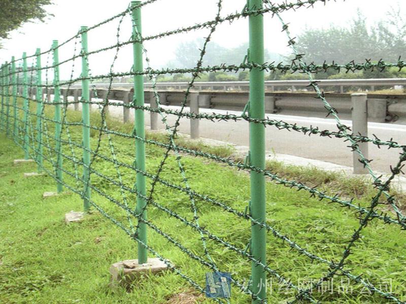 刺繩隔離網(wǎng)產(chǎn)品用途:由于刺線網(wǎng)造型獨(dú)特,因而能達(dá)到極好的防護(hù)效果。泛應(yīng)用于軍事、監(jiān)獄、看守所、政府機(jī)關(guān)、銀行、以及生活小區(qū)的圍墻,私人住宅、別墅的圍墻門窗,高速公路、鐵路護(hù)欄,邊境線等用來(lái)防固保安的隔離圍墻,明顯已成為高級(jí)圍籬之主流。