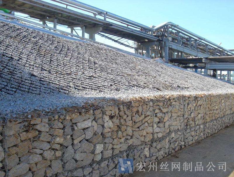 石籠網(wǎng)也稱重型六角網(wǎng)、擰花網(wǎng)、格賓網(wǎng)、三絞節(jié)機編網(wǎng)、雙絞格網(wǎng)是金屬線材編織的角形網(wǎng)(六角網(wǎng))制成的網(wǎng)箱,使用的金屬線徑是根據(jù)六角形的大小而不同.如果是金屬鍍層的金屬線六角形,則使用線徑為2.0mm到4.0mm的金屬線,如果是PVC包覆的金屬線編織的六角網(wǎng),則使用外徑為3.0mm到4.5mm的PVC(金屬)線.外框邊緣的線則使用比六角網(wǎng)線粗一號的線。
