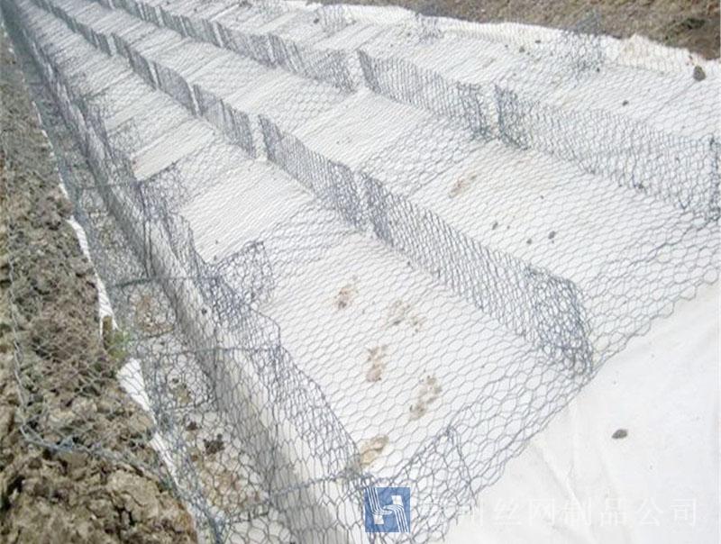 雷諾護墊是厚度在0.15-0.5m(含0.5m)的網(wǎng)箱結構。主要用作河道、岸坡、路基邊坡護坡結構。既可防止河岸遭水流、風浪侵襲而破壞,又實現(xiàn)了水體與坡下土體間的自然對流交換功能,達到生態(tài)平衡。坡上植綠可增添景觀、綠化效果。